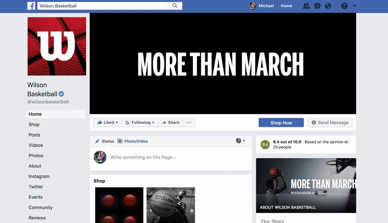 Wilson's social channels got makeover with the new More Than March campaign look and feel